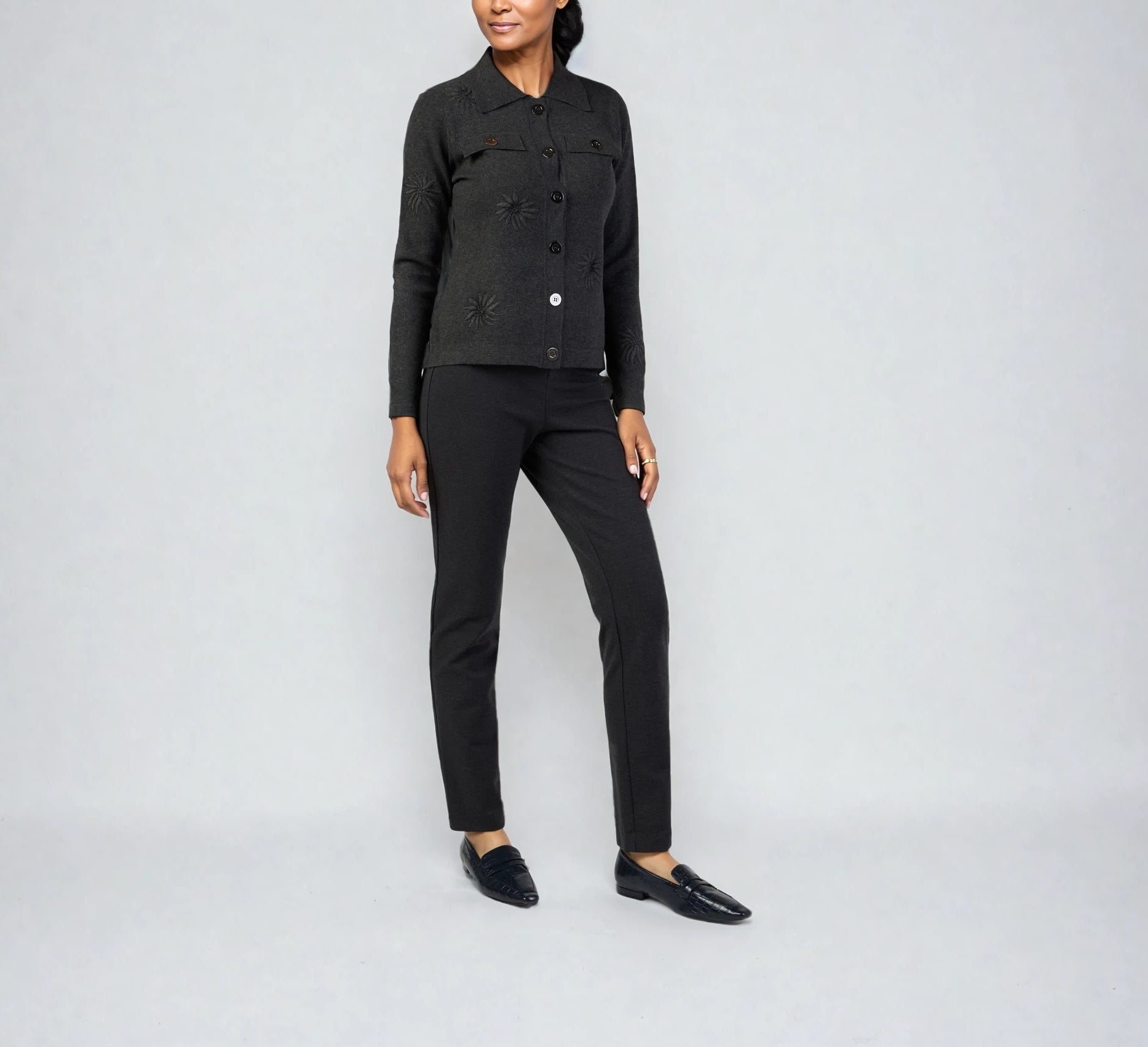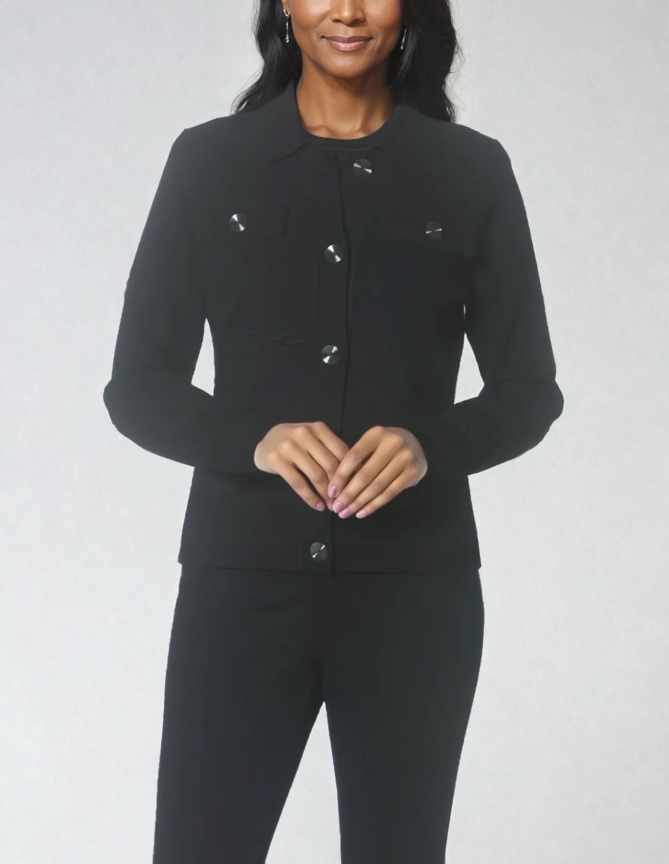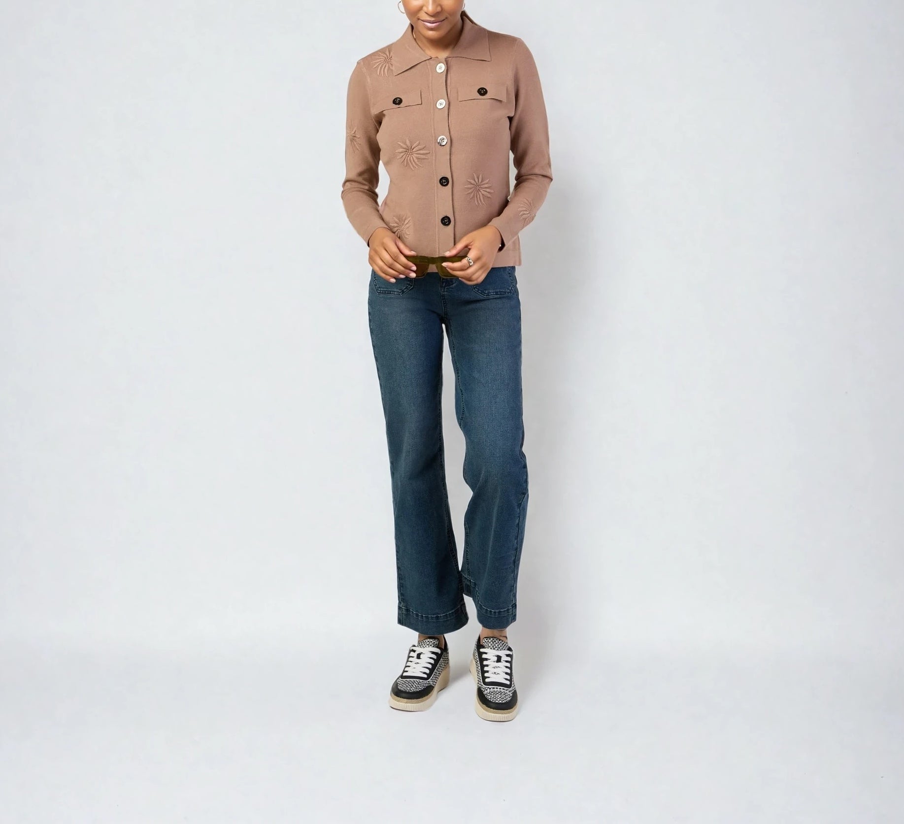 The Siena Bloom Embriodered Jacket, created in our Stolen Softness™️ Proprietary beloved yarn blend for a handcrafted feel, features a classic button-front silhouette with thoughtful detailing. Two pockets at the chest add charm, while a crisp collar and shell-colored buttons keep the look polished. With colorways from Camel to Flamingo, as well as delicate floral embroidery creates a playful, yet elevated look. The fit is relaxed but tailored, ideal for pairing with trousers for work meetings or styled open with denim for a casual stroll through a city. A tailored, yet feminine piece, with modern style.