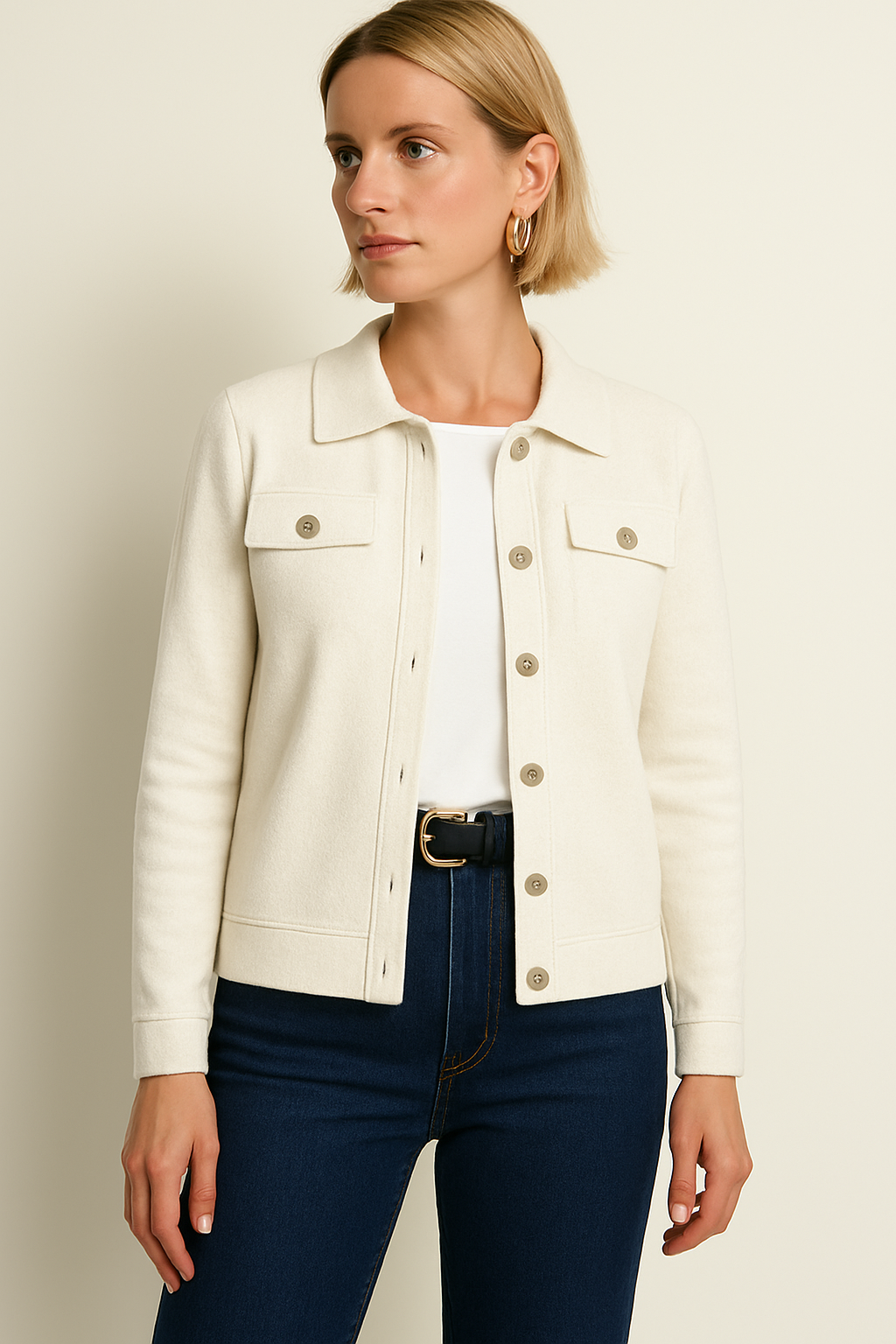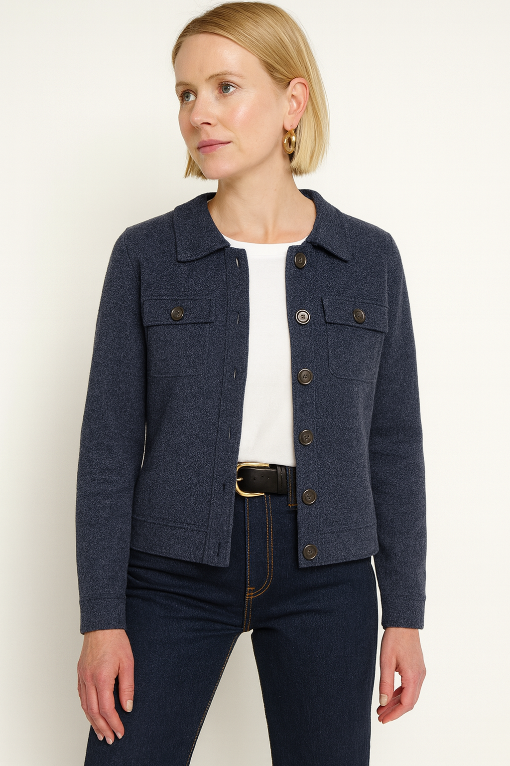 A modern take on a classic jacket, The Joburg Jacket is knit in our Stolen Softness™️ Proprietary beloved yarn blend for a soft, structured feel with built-in comfort. Featuring traditional denim styling—button front, chest pockets, and a tailored collar—this piece blends casual form with quiet polish. Colorways like Fawn or Indigo offer an earthy, warm twist on a classic style. Perfect for layering over knits for casual ensembles or buttoned up for a more refined take on off-duty dressing.
