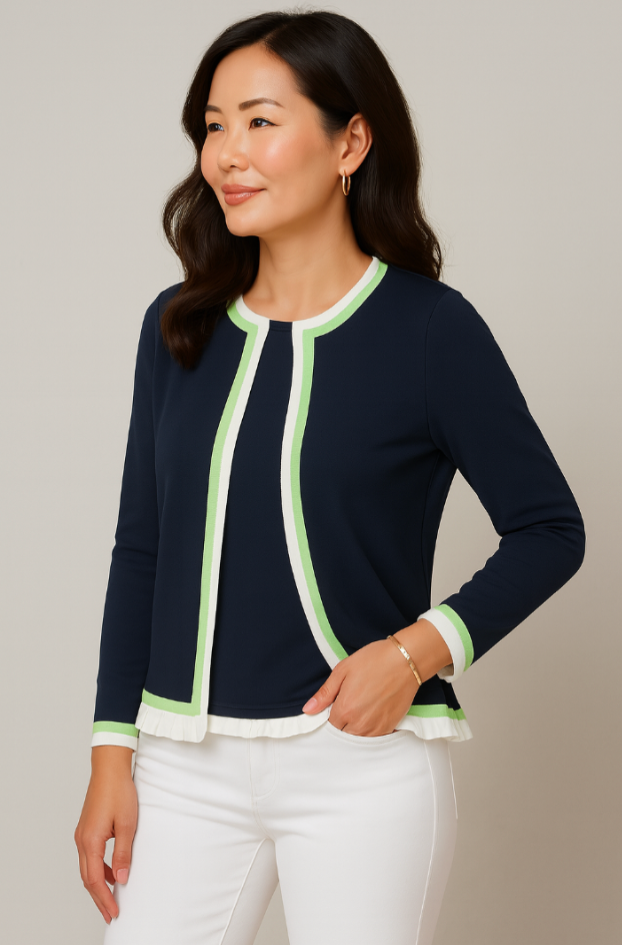 Lighthearted and elevated, The Naxos Multicolored Jacket pairs bold color with breezy charm. This cardigan-style layer features soft lettuce-edge detailing along the cuffs and hem, lending a delicate, rippling finish. The lightweight knit adds just enough structure, making it the perfect piece for sunlit strolls or layering on cooler evenings. An effortless blend of comfort and polish.