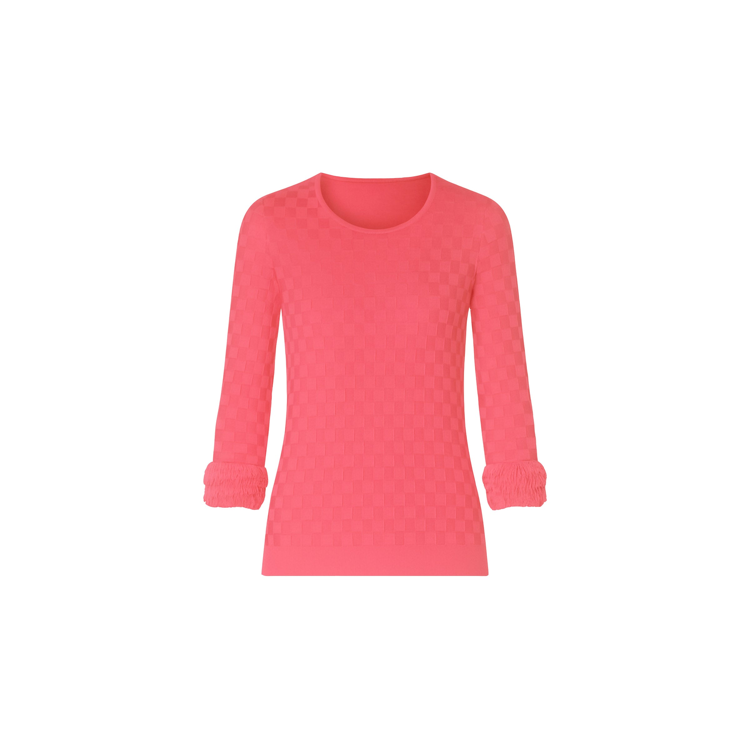 Playful yet polished, the Palermo Fringe Cuff Top brings texture and movement to your everyday wardrobe. Crafted in our Stolen Softness™️ Proprietary beloved yarn blend, this top is available in a vibrant Cerise hue. It features a subtle repeating square motif woven into the fabric for a touch of dimension. Fringe detailing at the cuffs adds a soft, unexpected finish—blending structure with a hint of whimsy. A bold, feel-good piece with artful texture and effortless flair. Perfect for beach getaways or brunch with friends.