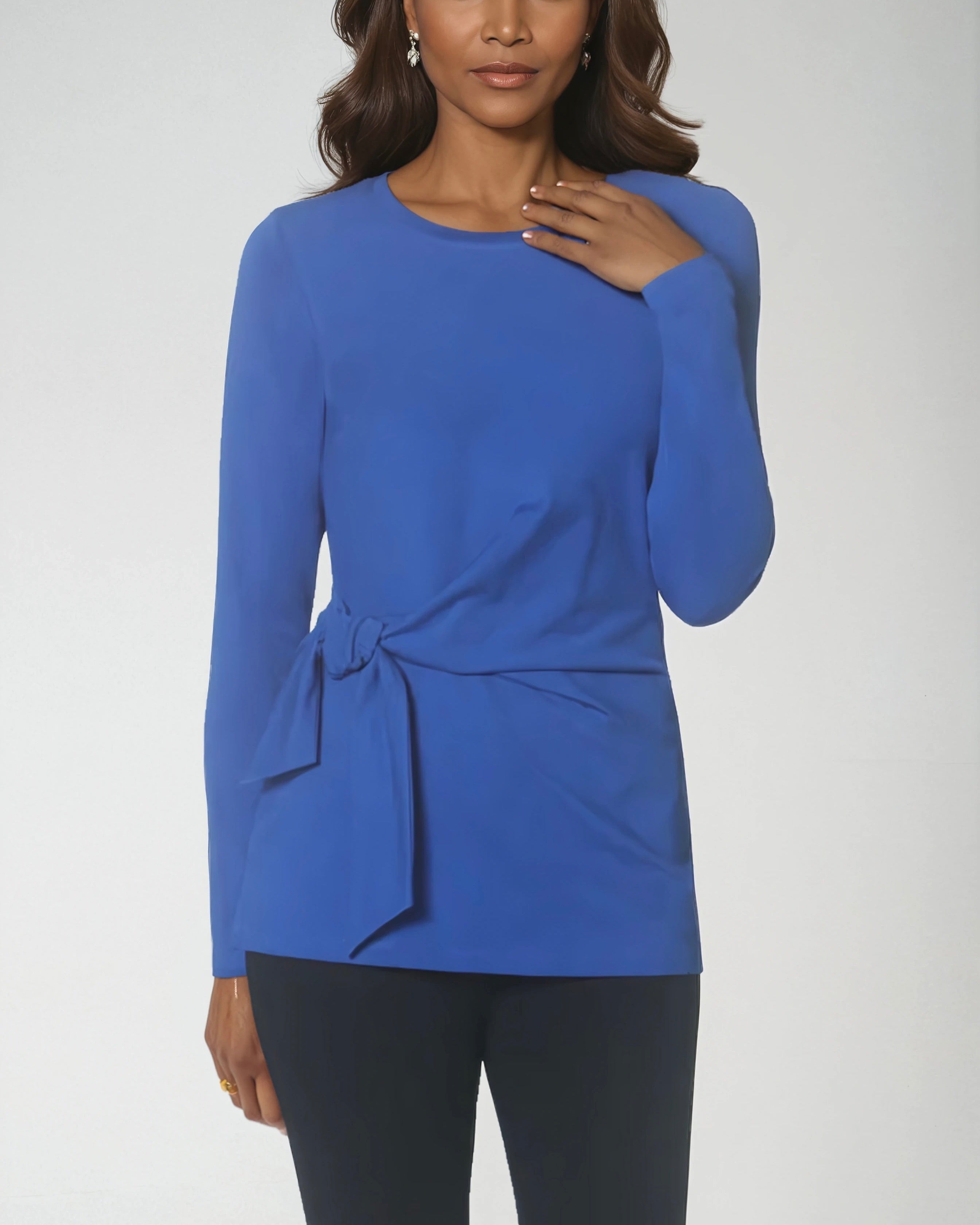 The York Tie Tunic pairs clean lines with a subtle sense of shape, crafted in our soft yarn blend. Designed with a classic crew neckline and full-length sleeves, its soft, elongated silhouette is finished with a side tie that gathers gently at the hip—adding definition without sacrificing ease. Refined yet relaxed, it's a versatile piece offered in Red, Black, Charcoal, or Blue, that moves fluidly between weekdays and weekends. Perfect for pairing with denim for bistro lunches. Chic, stylish, and sophisticated for any occasion.• Care Instructions: Machine wash cold, Only non-chlorine bleach when needed, Tumble dry low, Cool iron OR Professional dry clean.• Fabric Content: 96% Pima Cotton / 4% Spandex• Country of Origin: Peru