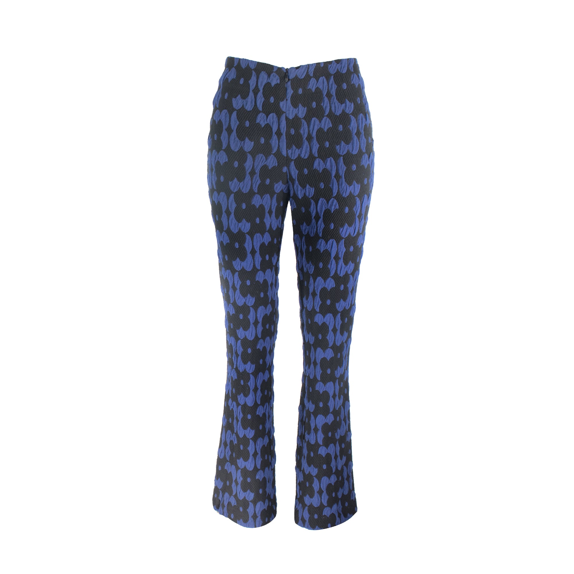 Made in our signature woven fabric, The Flared Jacquard Portofino Pant adds edge to your wardrobe. It features a bootcut silhouette, 31 1/2" inseam, and center-front invisible zipper closure. Complete with a repeating floral knit jacquard, it's a bold statement piece for both professional and chic casual looks, to be paired with a blazer or basic knit. Perfect for business meetings, sophisicated dinners, and late-night outings. A chic, yet versatile and intricate piece.