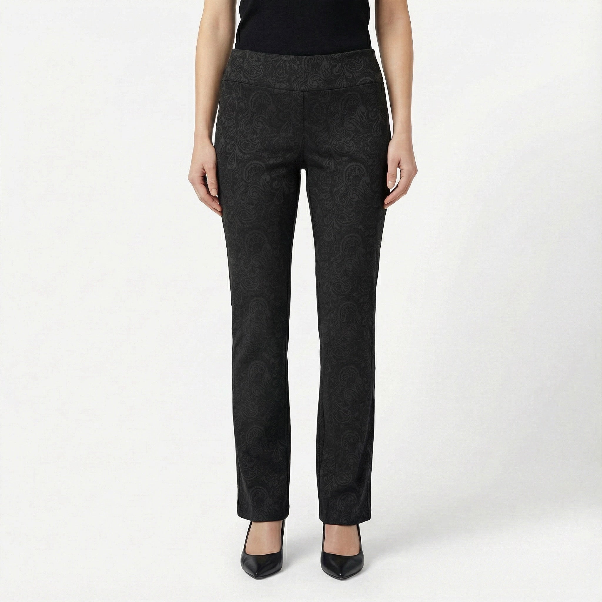 Step into effortless elegance with the Bellagio Paisley Pant, crafted in our luxurious 'Amalfi' fabric. Featuring a bootcut silhouette with an inseam of 30" and a pull on waistband, this style offers a flattering fit that elongates the leg with a modern twist. Adorned with a subtle paisley print, it adds efined touch of pattern and texture. Perfect for dressing up or down, the Bellagio Pant blends classic sophistication with contemporary flair.