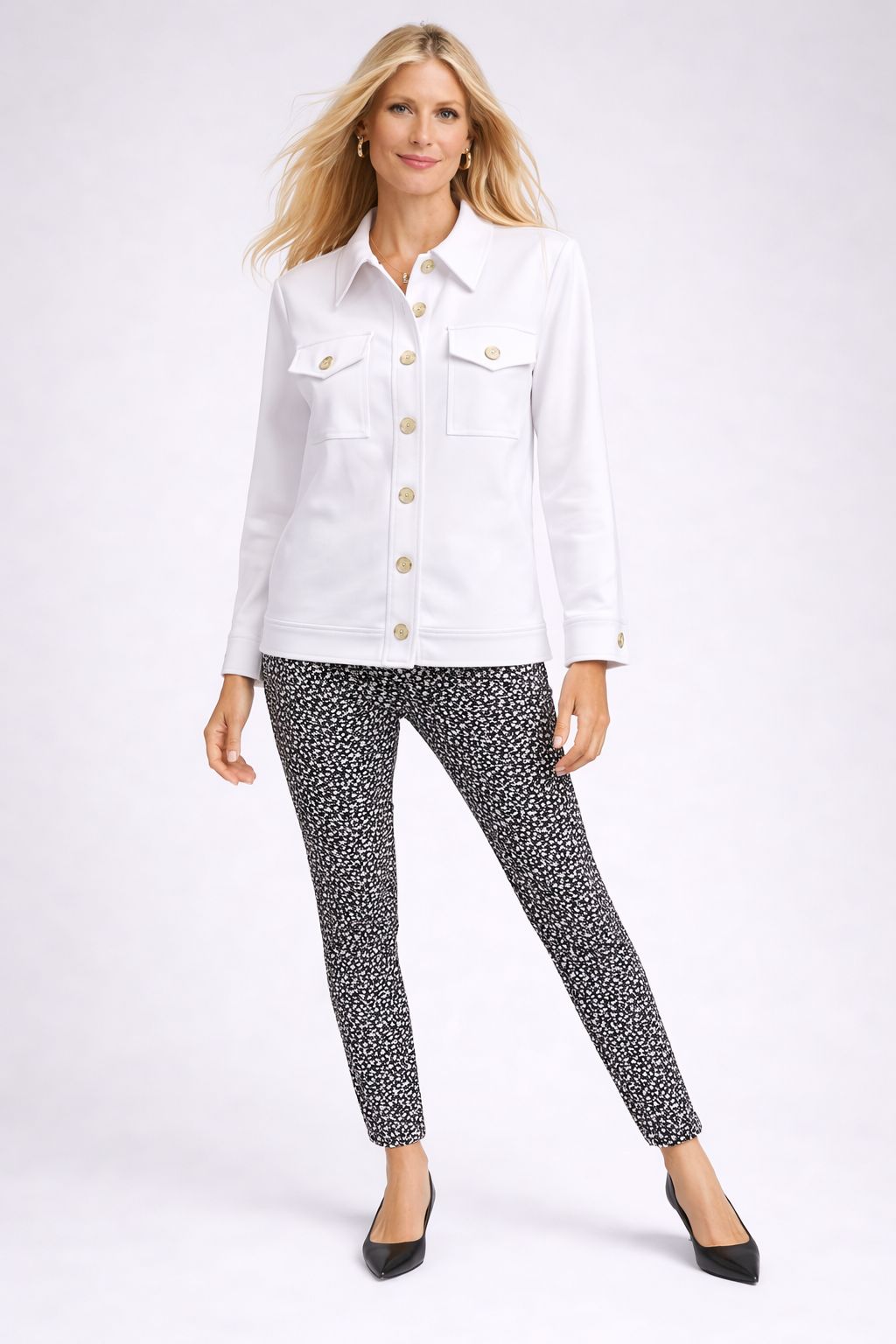 In a classic jean jacket silhouette, The Charleston Denim-Style Jacket is knit in our signature yarns for a soft, structured feel with built-in comfort. Featuring traditional denim styling—button front, chest pockets, and a tailored collar—this piece blends casual form with quiet polish. It brings a fresh feel to a classic style. Perfect for layering over knits for casual ensembles paired with trousers or denim. A polished take on a classic style.