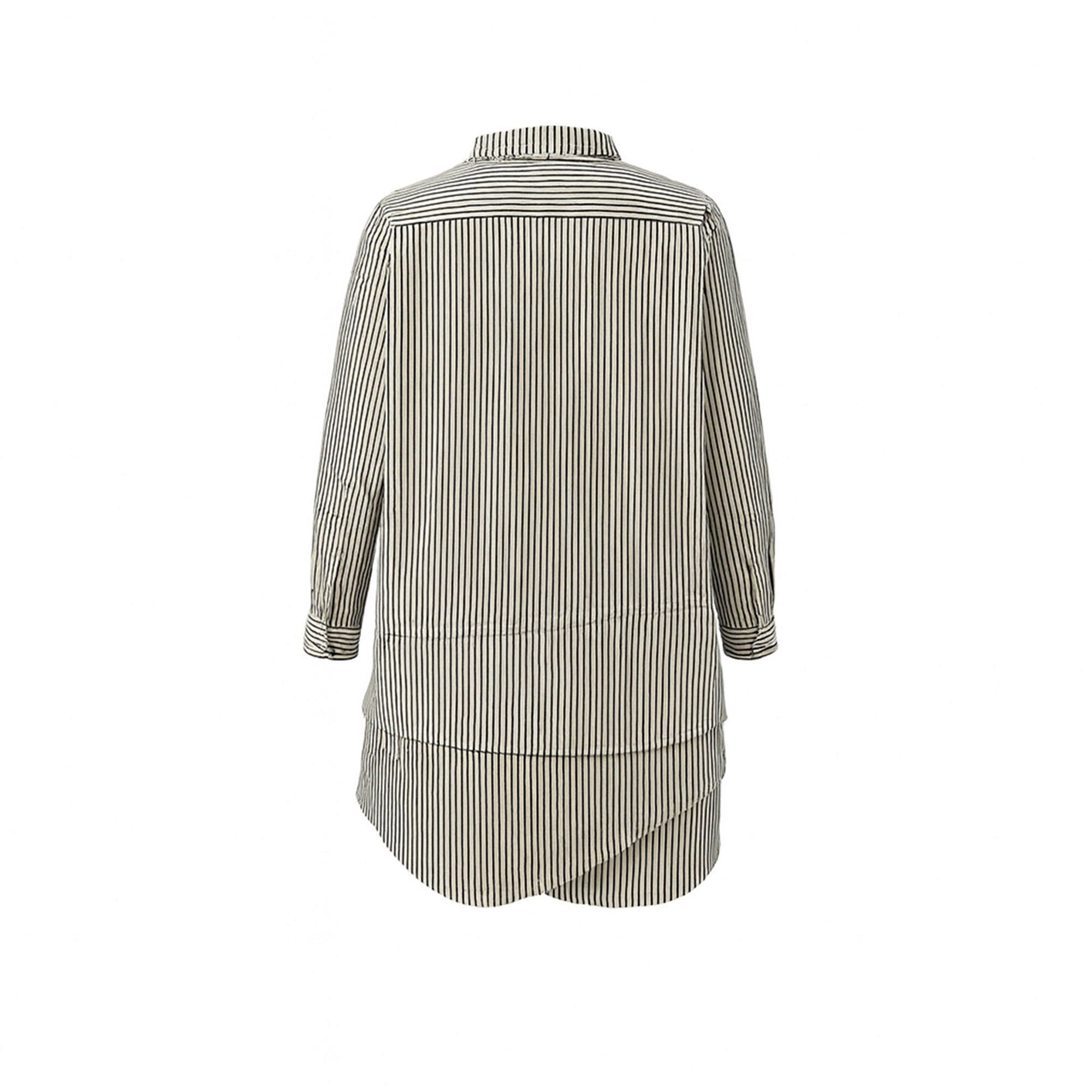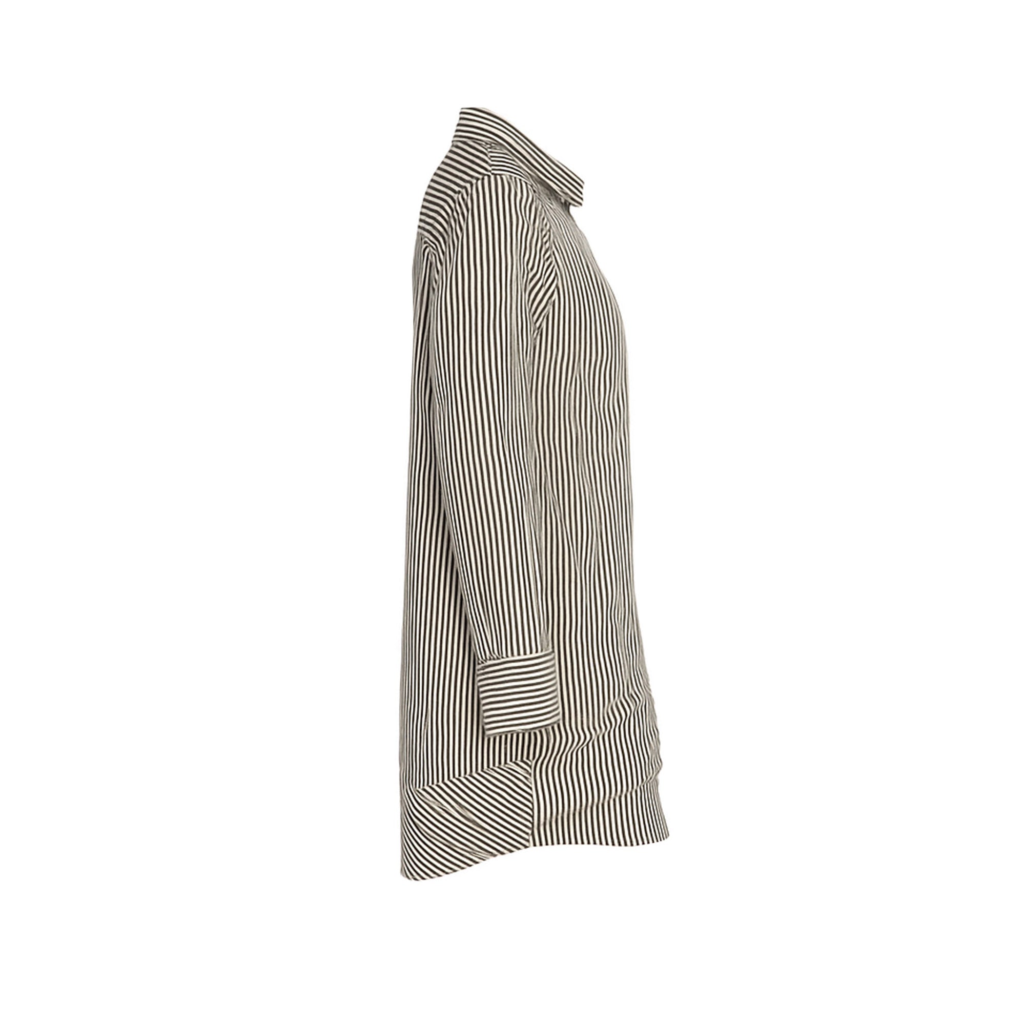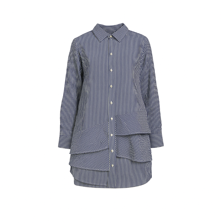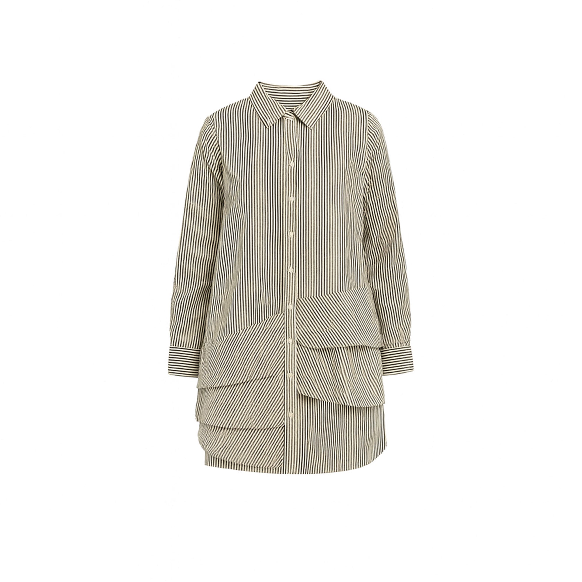 A modern classic with a playful twist. Crafted in our signature Panama fabric, the Panama Ruffle Dress combines crisp structure with soft movement. Vertical stripes elongate the silhouette, while tiered ruffle layers add a touch of feminine ease. Finished with a button-down front, cuffed sleeves, and a sharp collar, it's the perfect blend of tailored polish and relaxed sophistication—effortless from weekday to weekend.