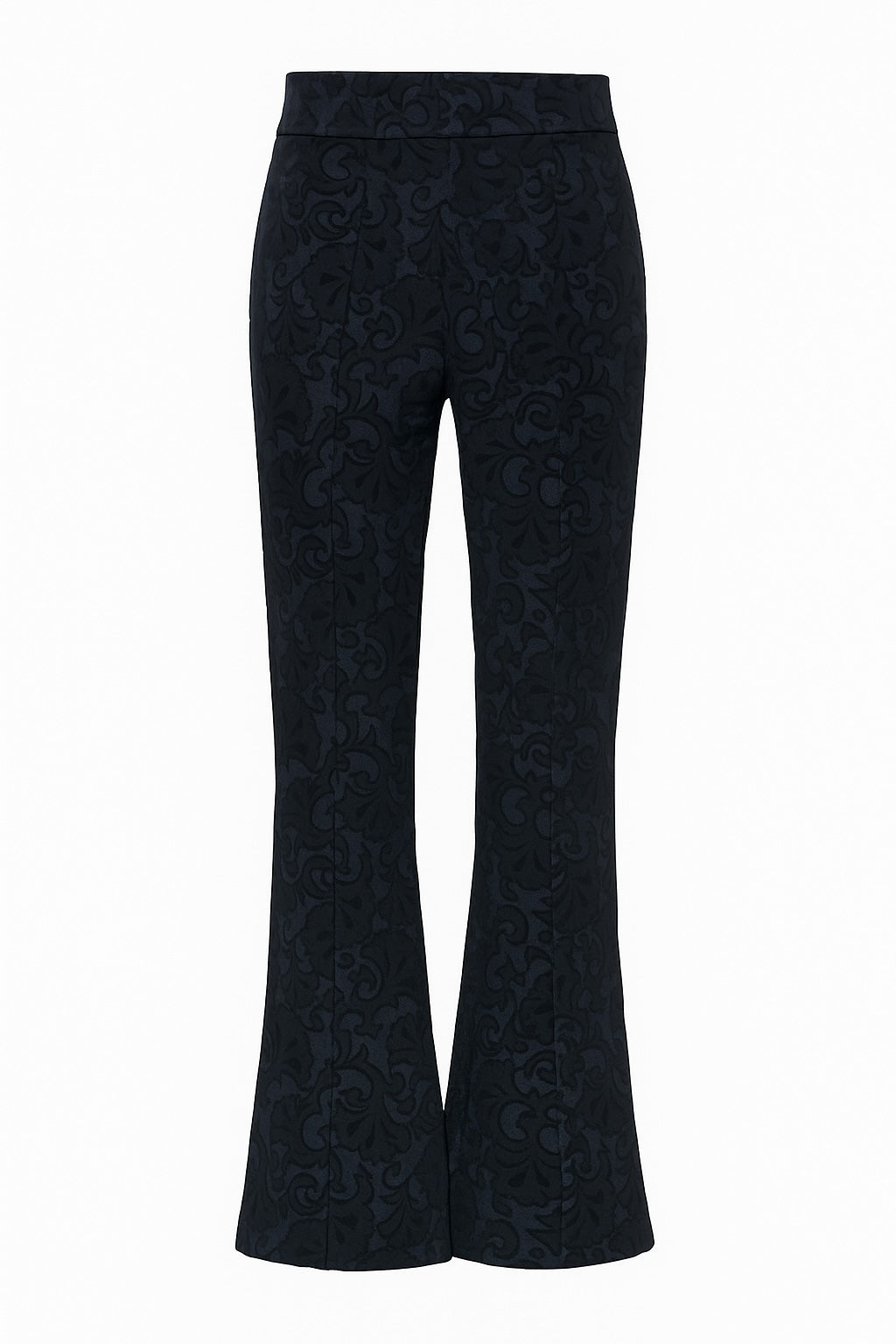 Our Noirelle Flared Pant is a flattering and comfortable statement piece. Tailored in our 'Santorini' Fabric, with a moody "lace-inspired" print. Complete with a flared bootcut silhouette, 31" inseam, and easy-to-wear pull on waistband. A sophisticated and poised piece that can be styled for any occasion -- for work events to evening dinners. A luxurious take on a classic, comfortable silhouette.