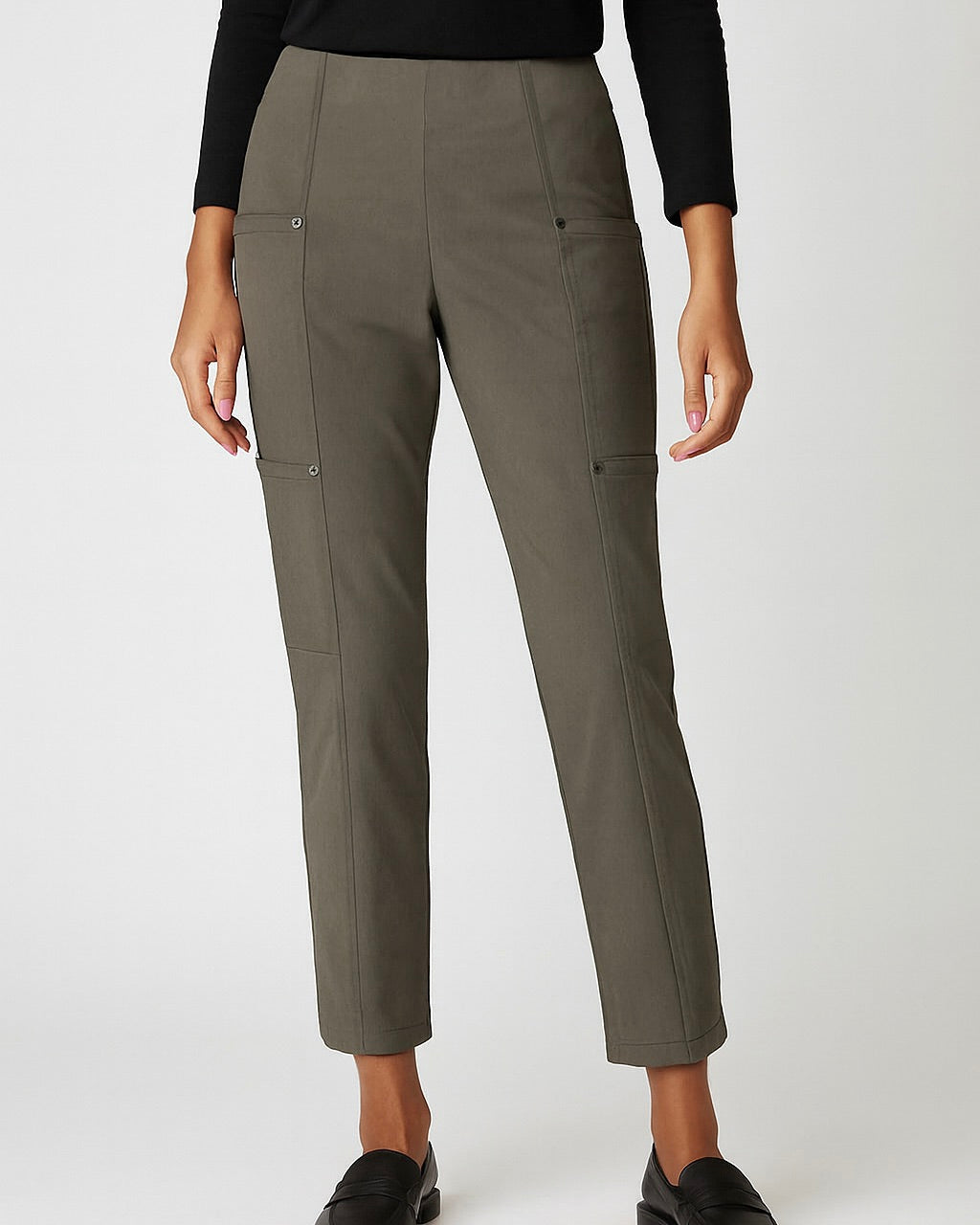 A refined take on utility, the Salerno Cargo Pant blends structure and comfort in our signature Riviera Stretch fabric. Designed with a straight-leg silhouette, it features four cargo-style pockets—two on each leg—finished with polished metal buttons for a touch of edge. Front seam stitching adds tailored definition, balancing casual function with elevated design. Versatile and modern, it's a staple that moves effortlessly from weekday to weekend. Perfect for pairing with knits and sneakers for casual afternoons. A refined take on a coastal-inspired style.