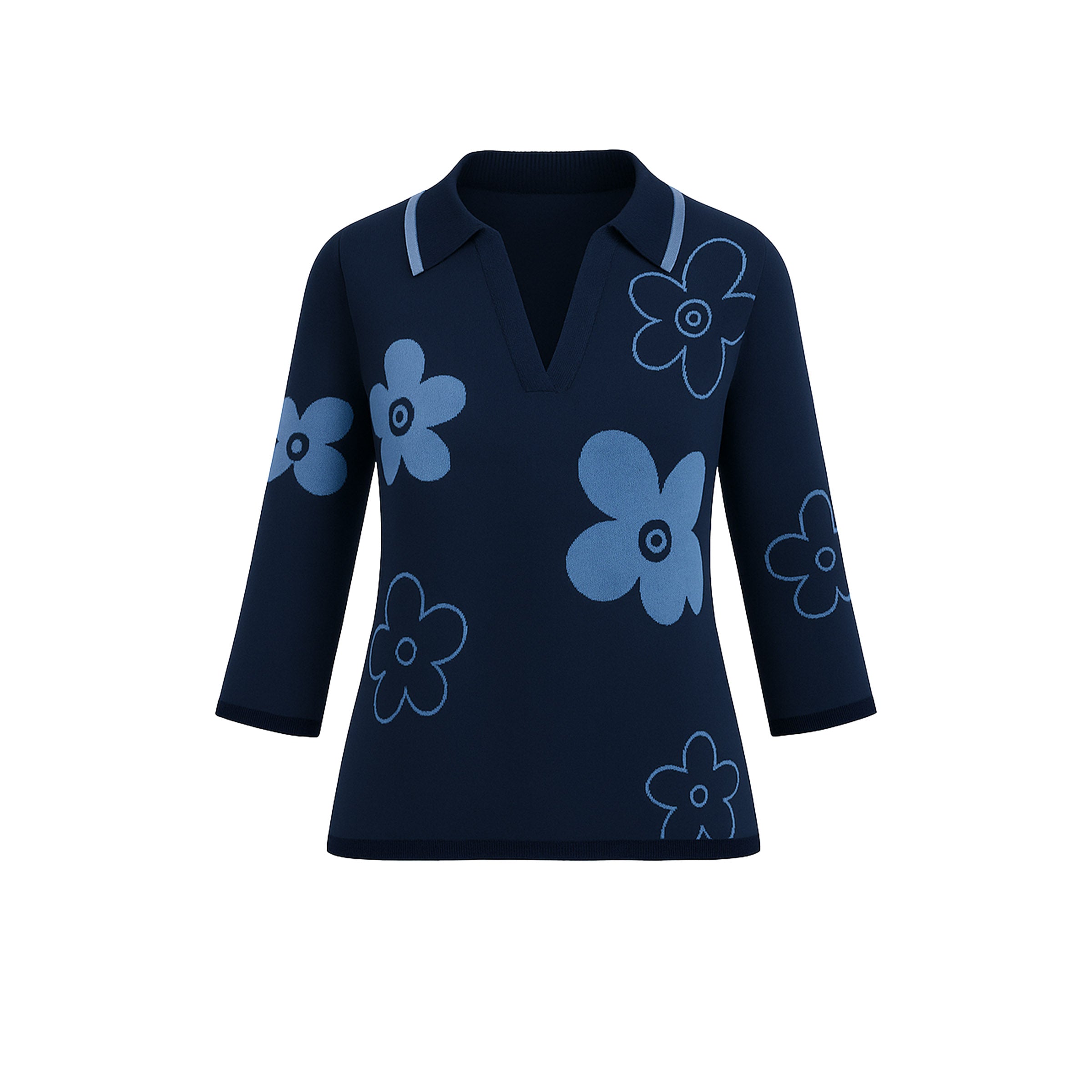 The Cyrene Sweater is crafted in our Stolen Softness™️ Propriety beloved yarn, featuring a long sleeve, relaxed V-neckline, and a soft collar. Finished beautifully with a floral geometric motif print, it's a harmonious blend of structure and softness. Perfect as a statement piece, designed to brighten your wardrobe with subtle sophistication.