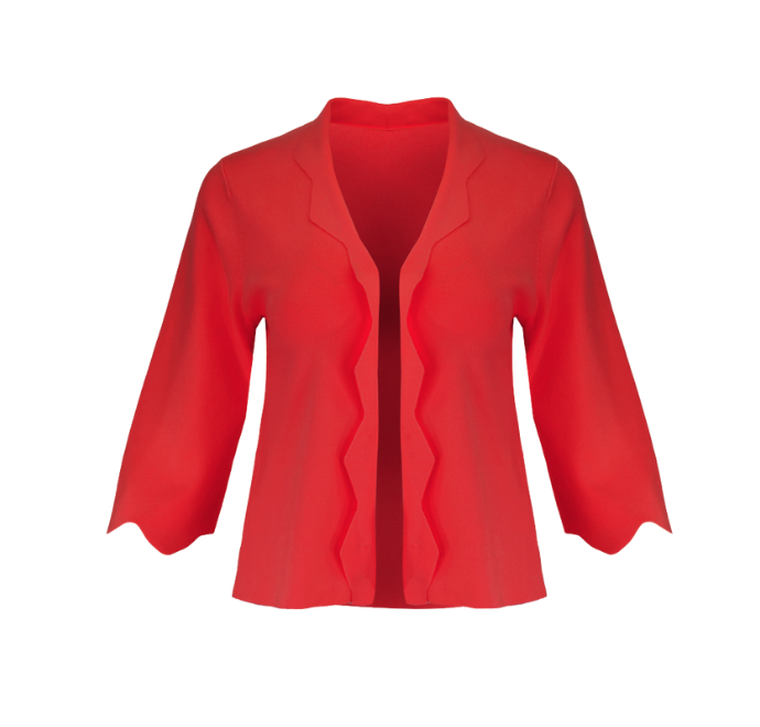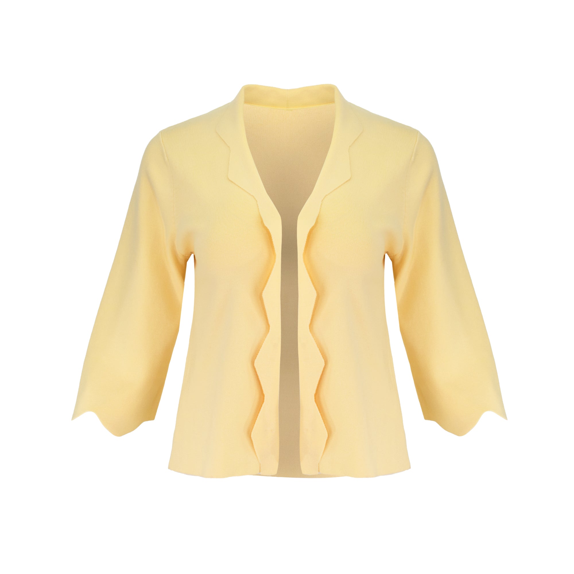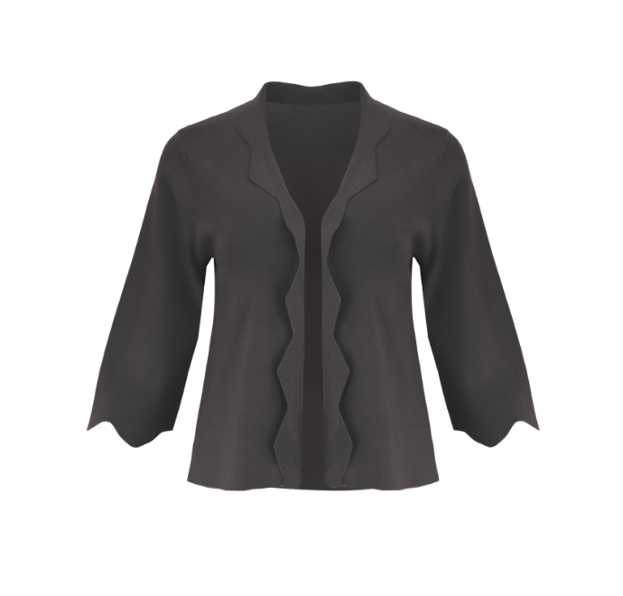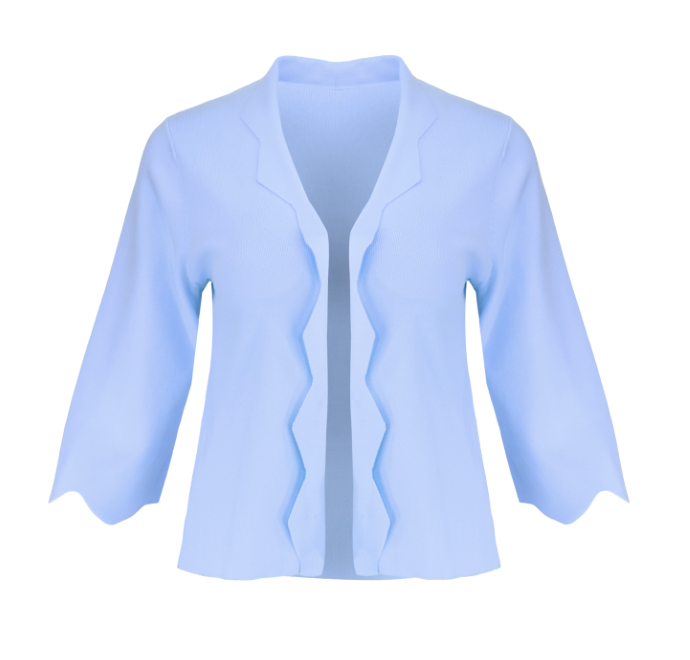 Crafted in our Stolen Softness™️ yarn, Thalassa Bolero Jacket features elegant ¾ sleeves and distinctive scalloped edges along the center front and cuffs, creating a softly sculpted silhouette. With the fluidity in shape, it's a refined layer with subtle, artful details. Graceful and fluid curves meet modern design -- Perfect for Sunday brunches.
