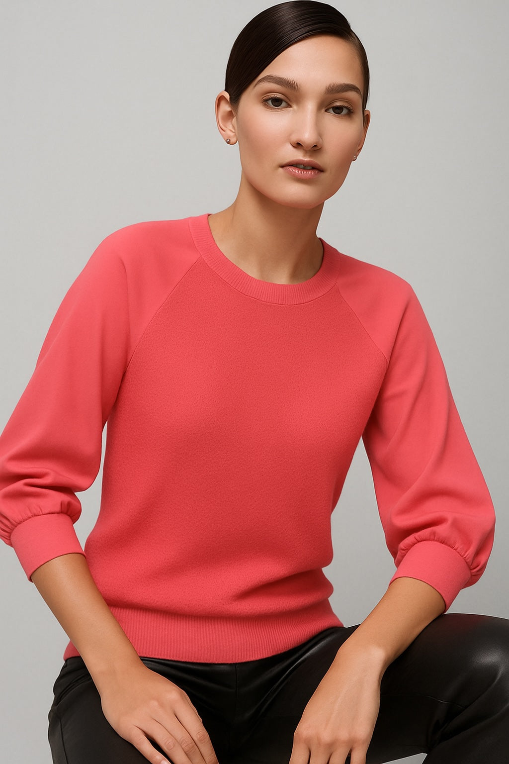 Relaxed and softly sculptural, The Vilna Crewneck brings a playful shape to everyday comfort. Designed with a loose crew neckline and exaggerated 3/4 sleeves that gather gently at the cuff, it balances volume with ease. The relaxed silhouette adds a casual, lived-in feel—perfect for layering or wearing solo on breezy days. Whether dressed up or down, it's a piece that moves with you. Playful and vibrant, wrapped in a comfortable silhouette.