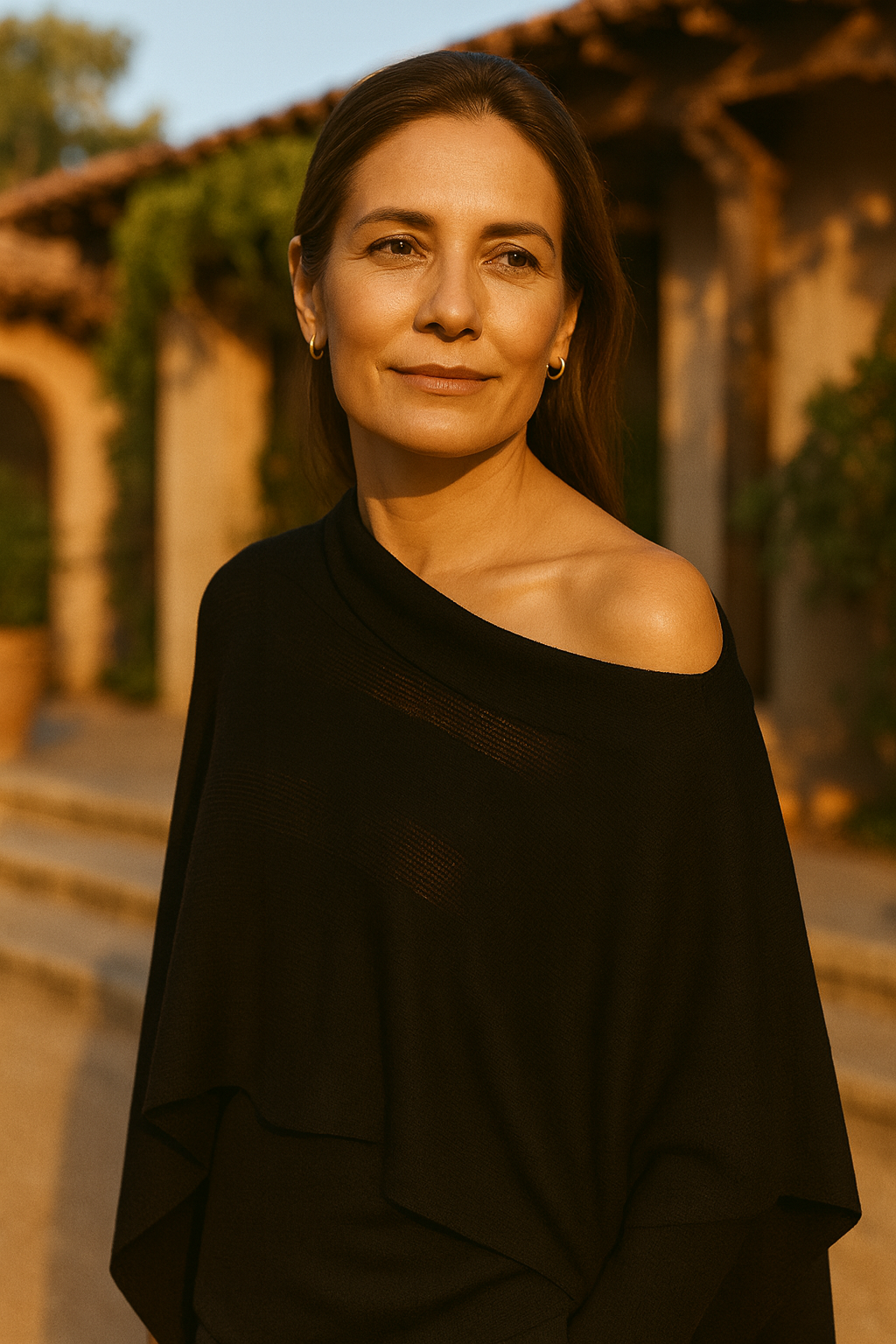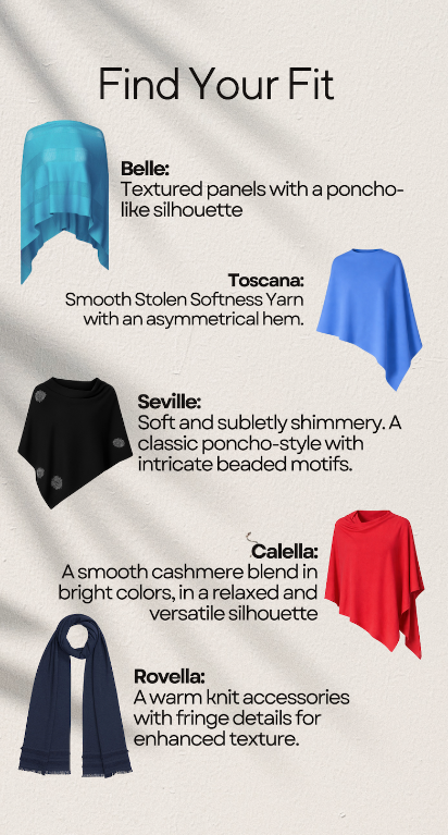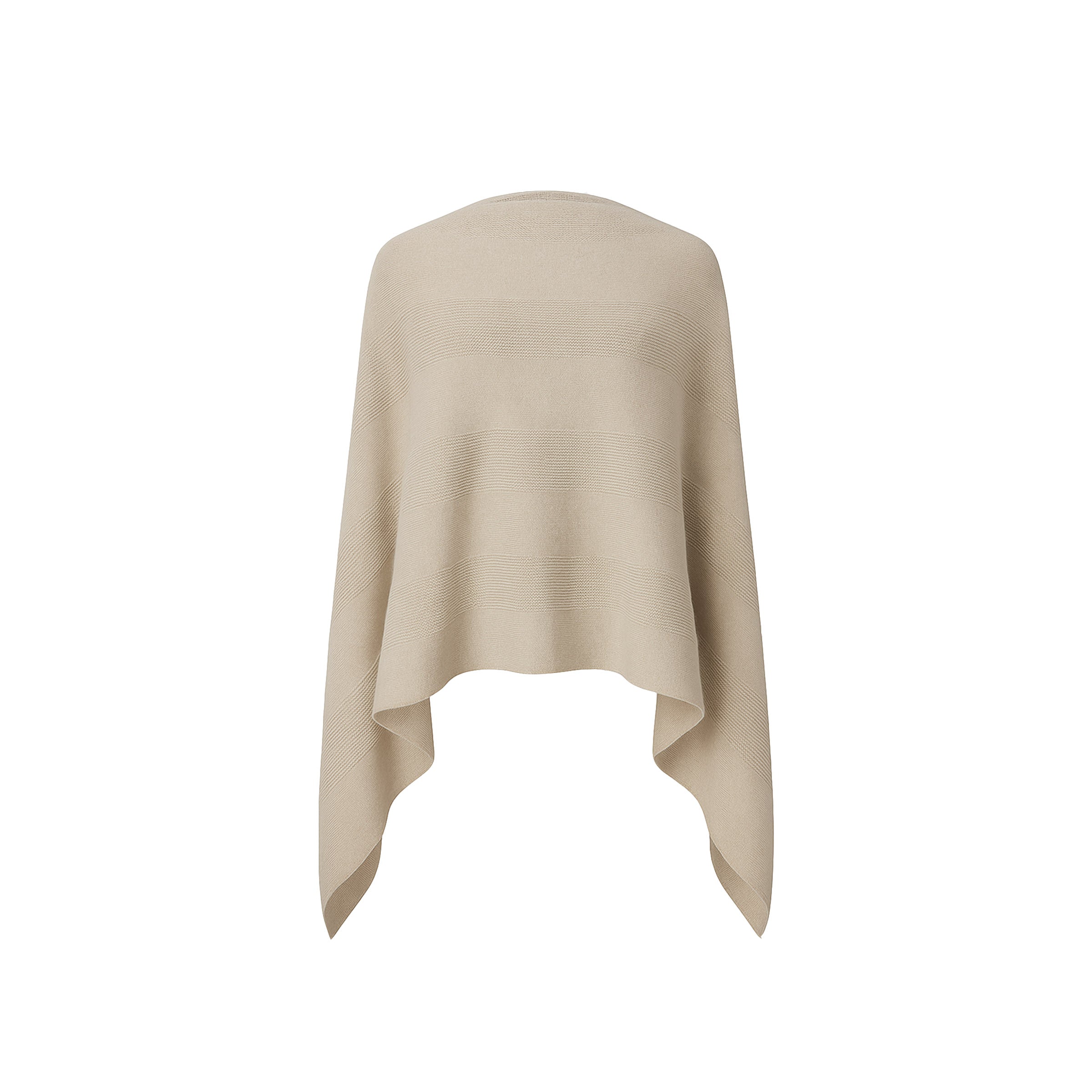 Lightweight and fluid, The Belle Duel-Textured Poncho is designed for ease and elegance in motion. Knit with our Stolen Softness™️ Proprietary beloved yarn blend, it features tonal striping and semi-sheer bands that create dimension without weight. The unstructured silhouette falls effortlessly over the shoulders, with a pointed hem that adds natural movement. It's a striking layer that transitions from season to season with ease. This poncho is perfect over a slim tank, dress, or knit base. The Belle Poncho will be a go-to in your closet for farmer's market trips or date nights. A classic and sleek transitional layer.