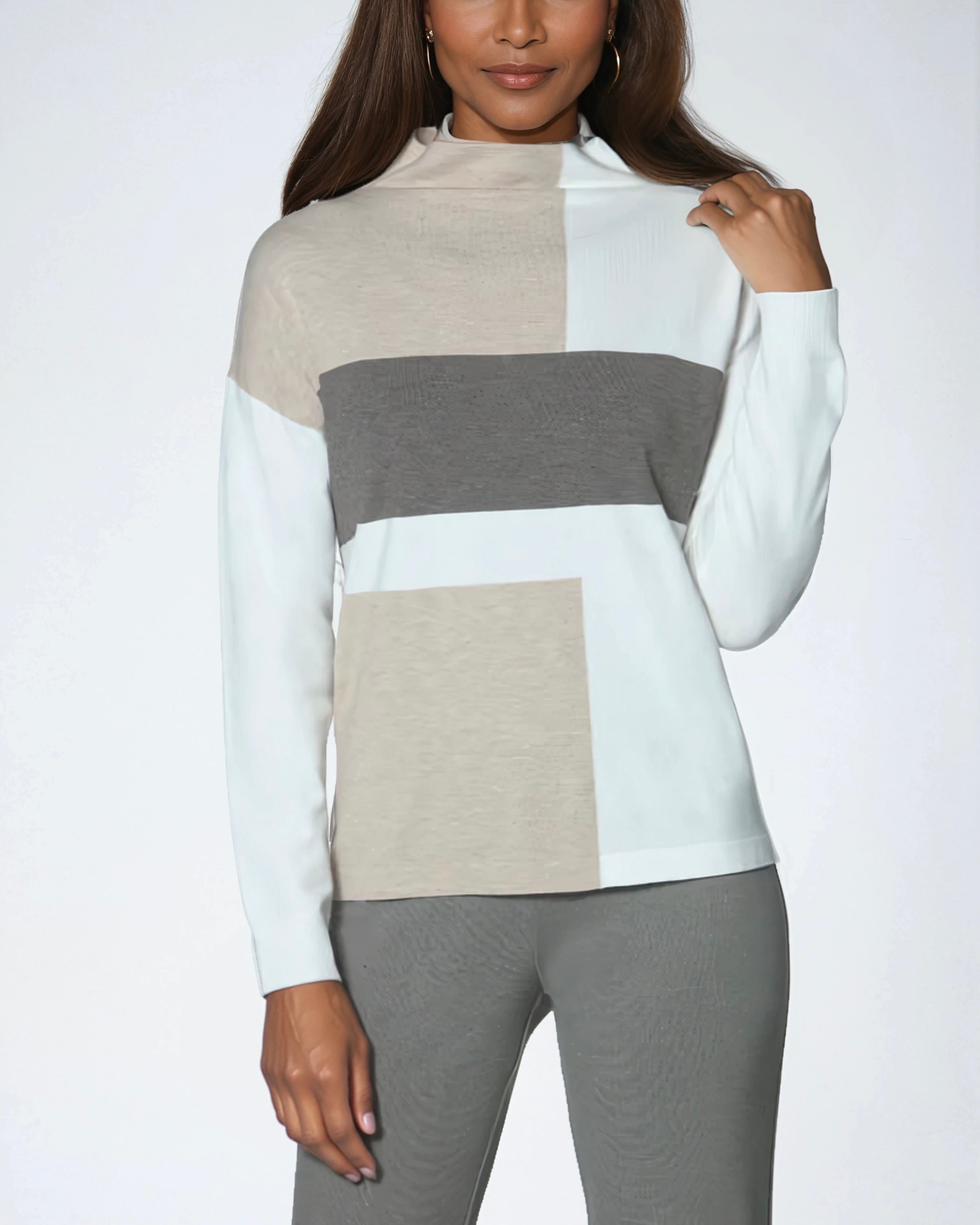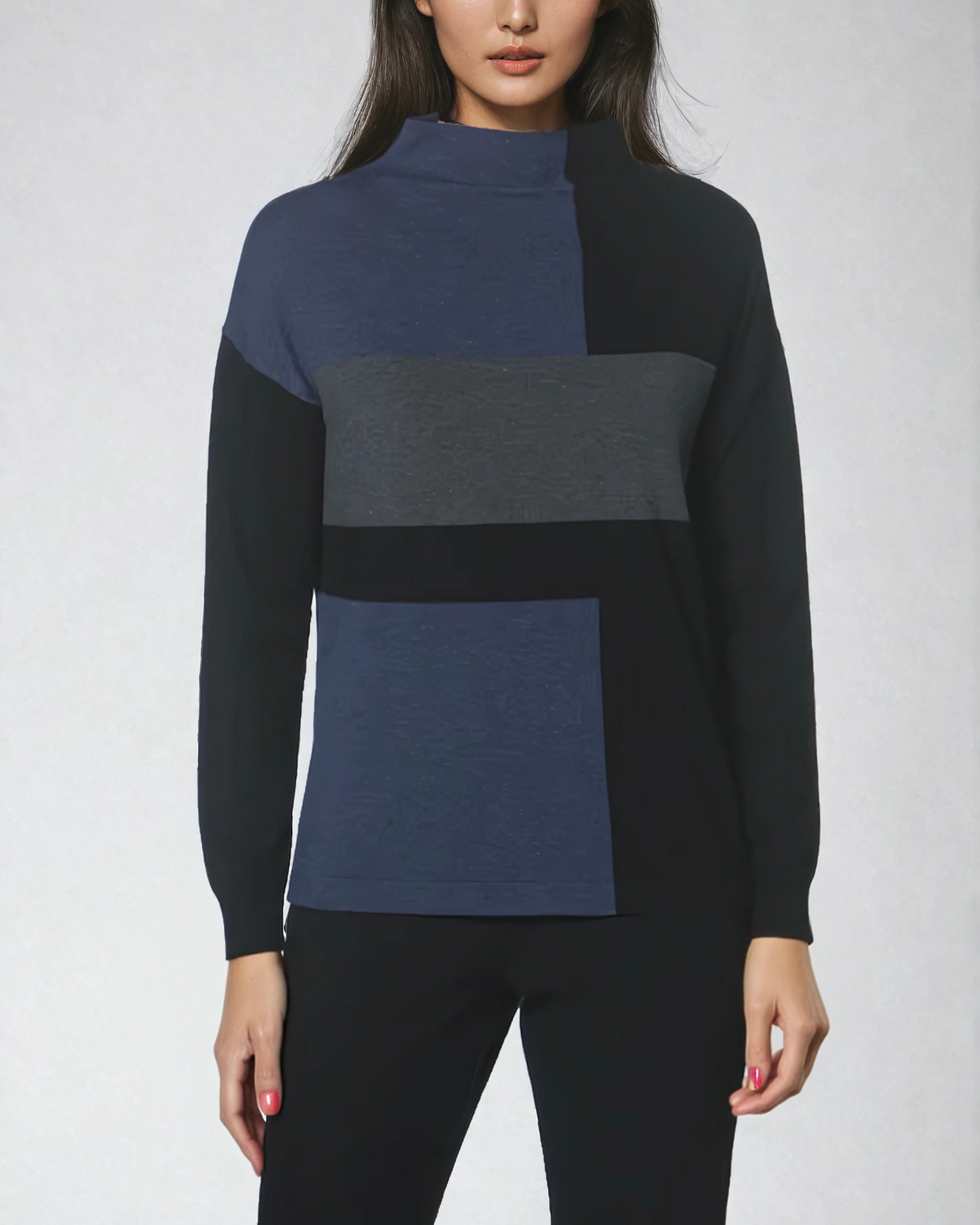 Crafted in our our Stolen Softness™️ Proprietary beloved yarn blend, The Zurich Colorblock Sweater offers warmth and quiet structure with a relaxed, easy shape. The mock neckline provides a clean, modern frame, while color blocking in deep colorways adds depth and visual interest. Available in moody colors like Sangria or Indigo, it's ideal for cooler days and layered dressing. It pairs perfectly with tailored trousers for office meetings, or layered with a coat for snowy alpine getaways. A moody palette, effortless fit, and softly sculpted silhouette make this a go-to piece for winter and beyond.