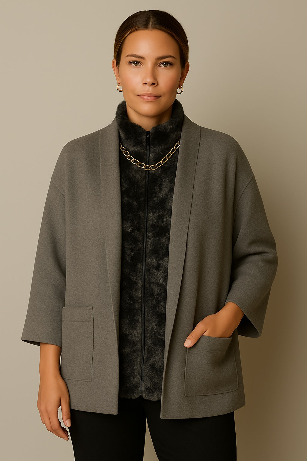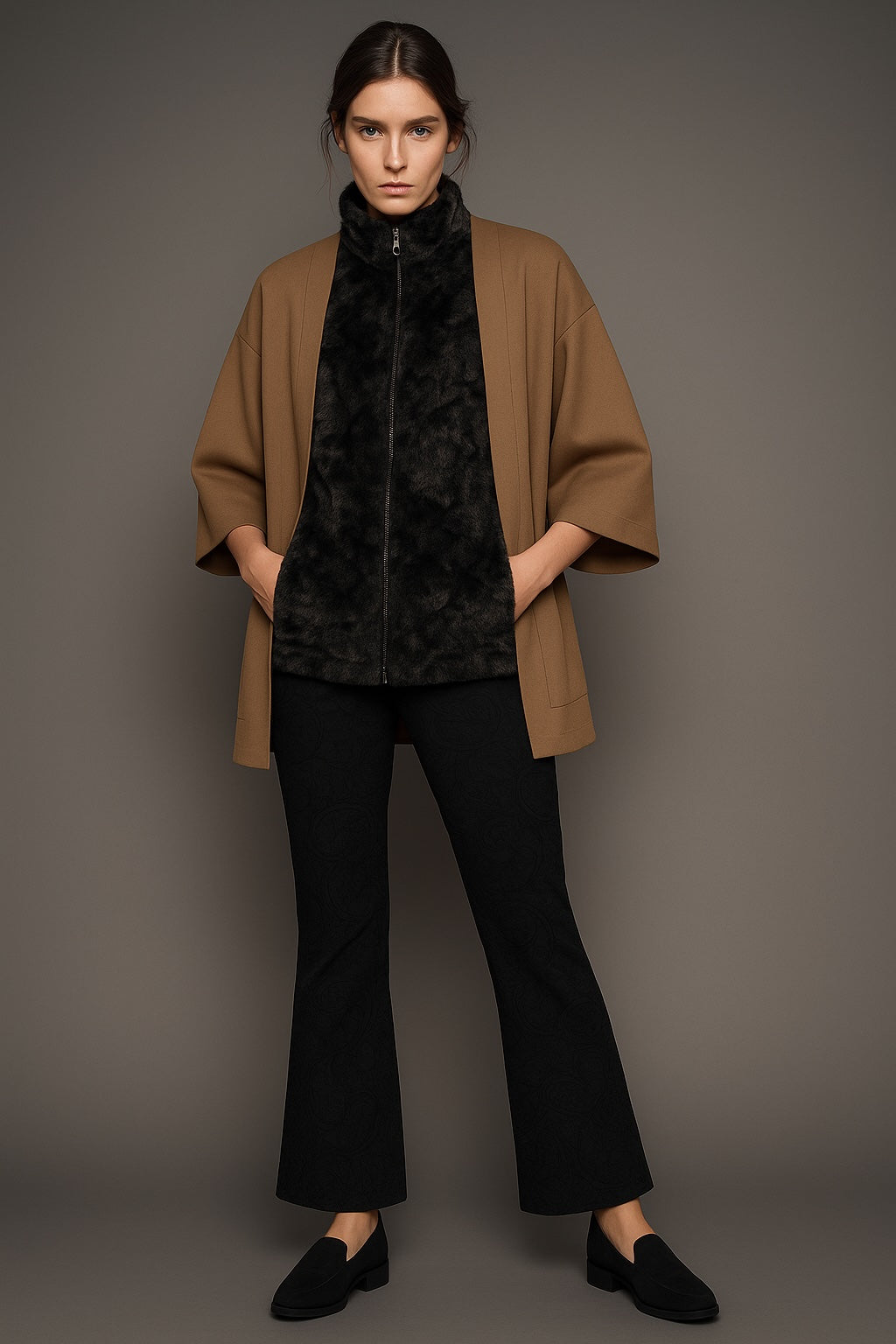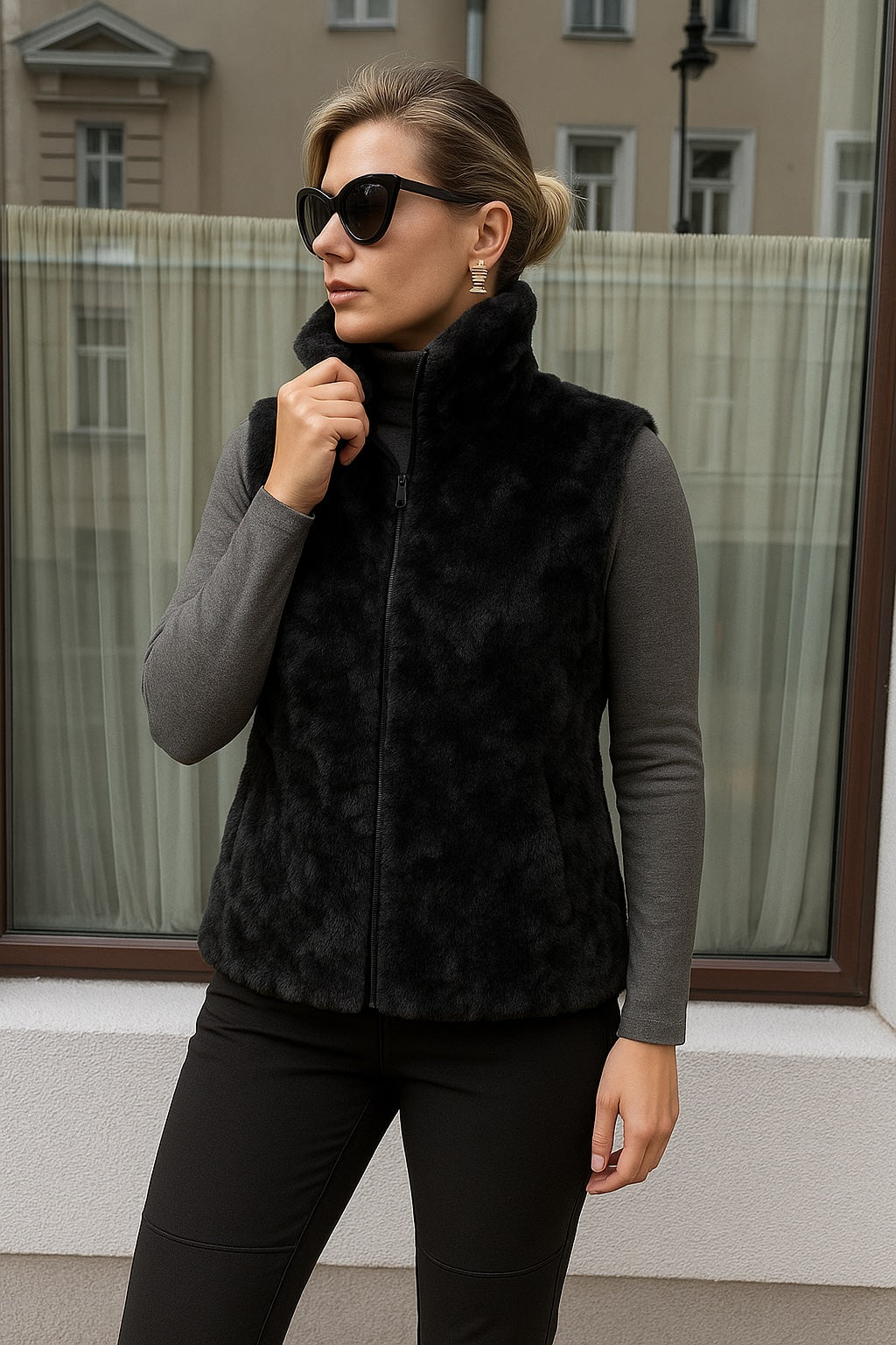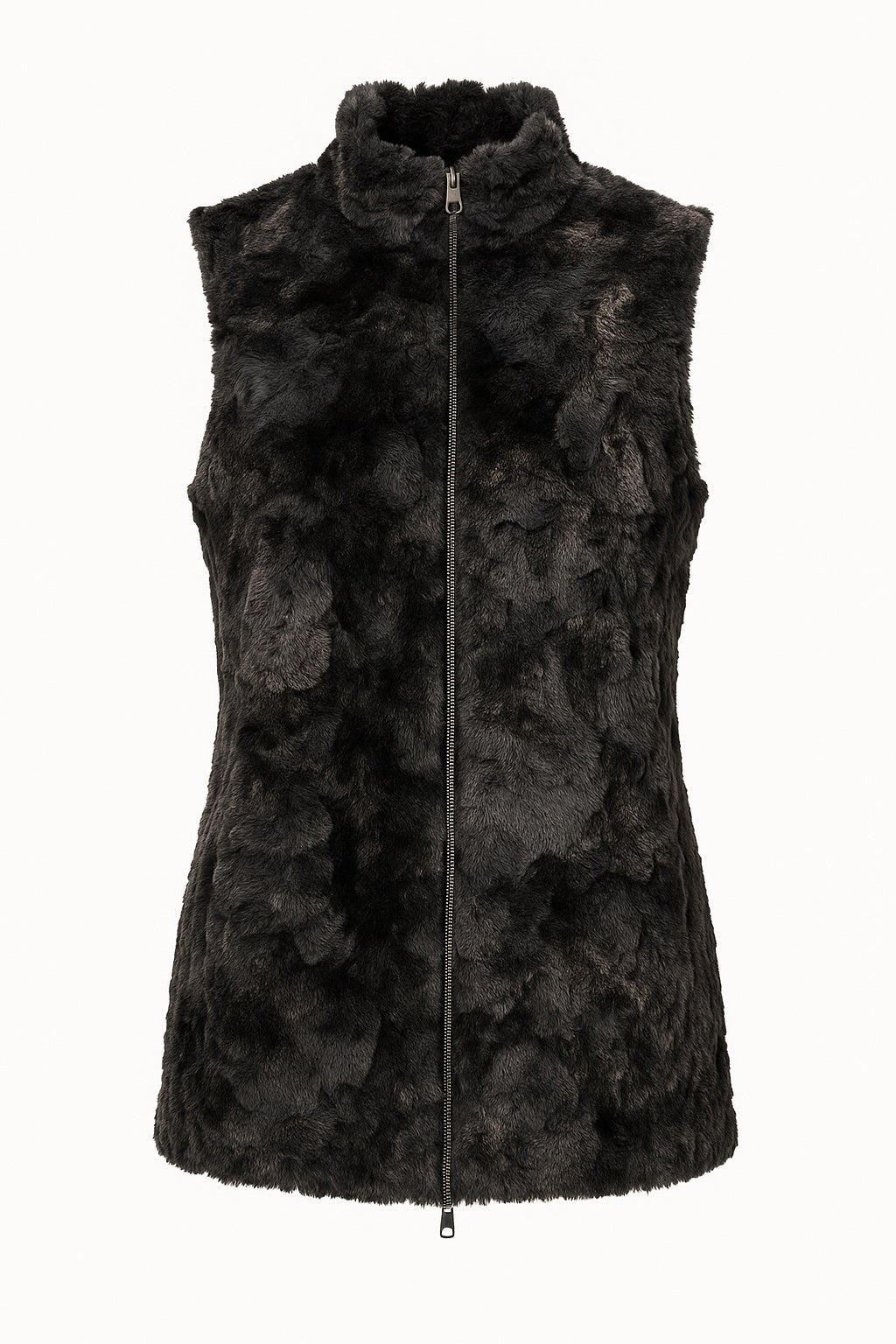 Crafted in our signature yarns, the Bern Faux Fur Vest wraps you in plush brown fur with a sleek front zipper closure. Offered in a Chinchilla colorway, it's a warm option for snowy days. Fitted and refined, it's perfect for layering on crisp city days or leisurely strolls through cobblestone streets. A luxurious nod to classic comfort with metropolitan style. A luxurious and cozy take on a classic style vest.