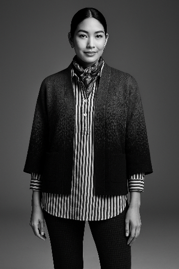 The Salzburg Ombre Coat is an oversized, artful layering piece featuring a subtle stippling ombré print that gently transitions through soft hues. Designed with our Stolen Softness™️ Proprietary beloved yarn blend in with a relaxed silhouette, it drapes effortlessly for a modern, sophisticated look. Available in neutral colorways like Ivory/Stone or edgey Black/Ink. Perfect for elevating both casual and refined outfits with a touch of understated elegance. Edgy and artistic -- A great statement piece.