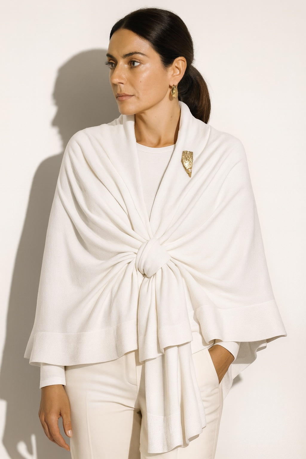 Spun from our Stolen Softness™️ Proprietary beloved yarn blend, The Sunday Ruffle Wrap brings a touch of romance to effortless layering. With an open front and easy drape, it slips on with minimal fuss, while the softly ruffled hem adds fluid movement and subtle flair. Lightweight but warming, it's ideal for transitional weather or layering. Offered in a selection of timeless hues like Ivory or Red, it's a refined alternative to a jacket—for everyday polish or casual elegance. Perfect for Holiday parties, escapes to wine country, or Sunday brunches. A classic and feminine transitional piece.