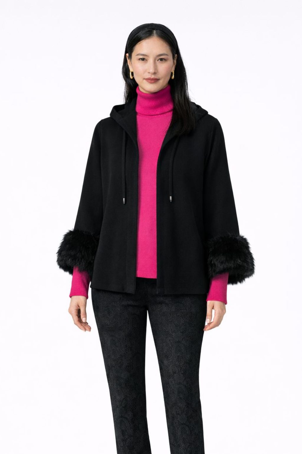 The Fur-Trimmed Hampstead Hoodie, created in our Stolen Softness™️ Proprietary beloved yarn blend for a luxurious feel, features a relaxed fit hoodie with a neck tie closure and 3/4 sleeve length. Fur trimming surrounds the cuffs, adding charm and seasonal texture. This hoodie is cozy yet refined -- perfect for alpine getaways or browsing shops on a windy city day. A cozy and refined layer.