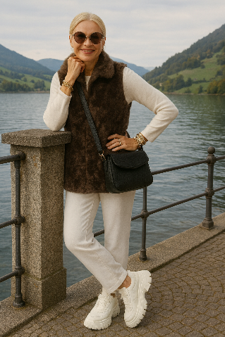 Crafted in our signature yarns, the Bern Faux Fur Vest wraps you in plush brown fur with a sleek front zipper closure. Offered in a Chinchilla colorway, it's a warm option for snowy days. Fitted and refined, it's perfect for layering on crisp city days or leisurely strolls through cobblestone streets. A luxurious nod to classic comfort with metropolitan style. A luxurious and cozy take on a classic style vest.