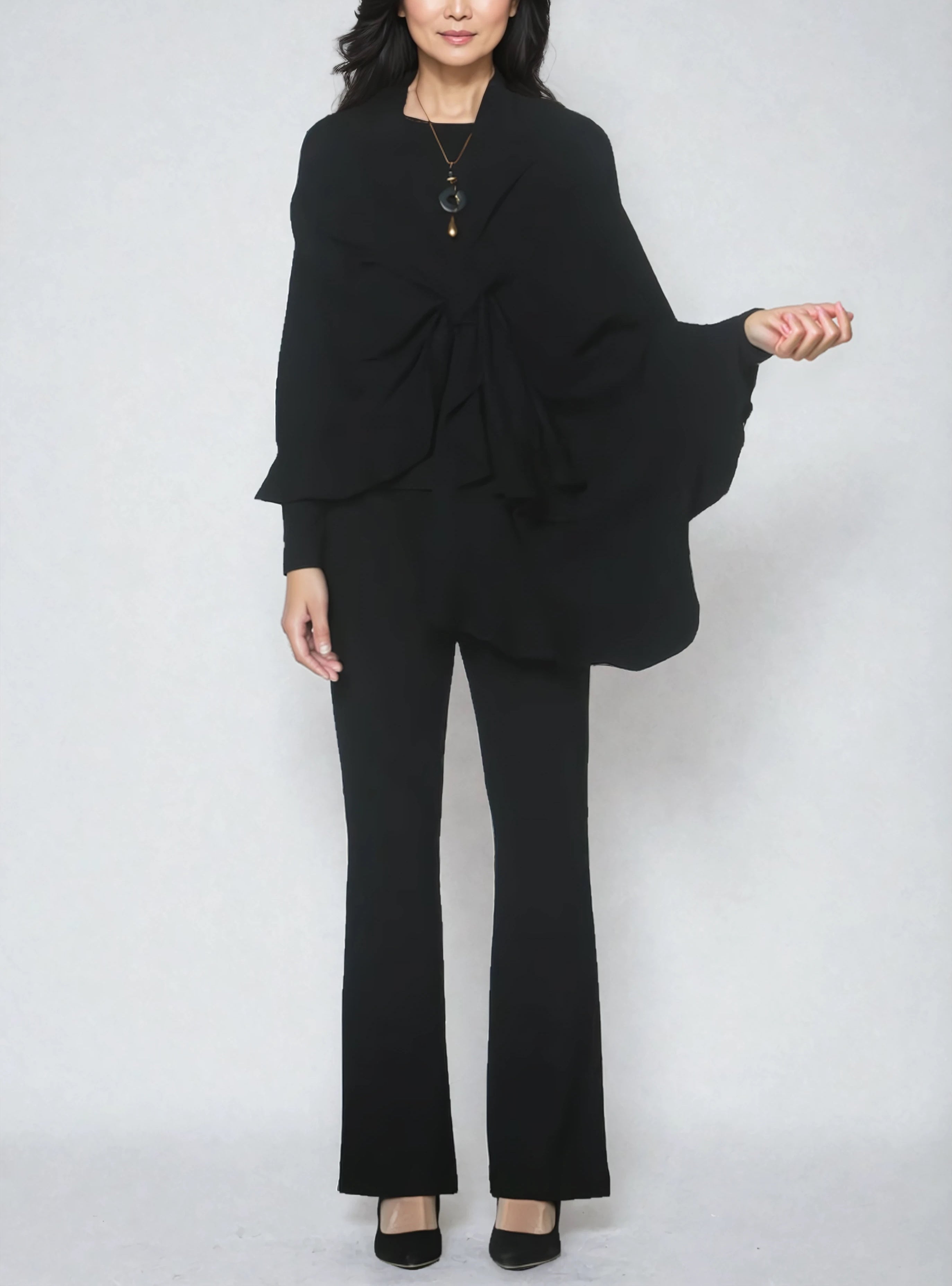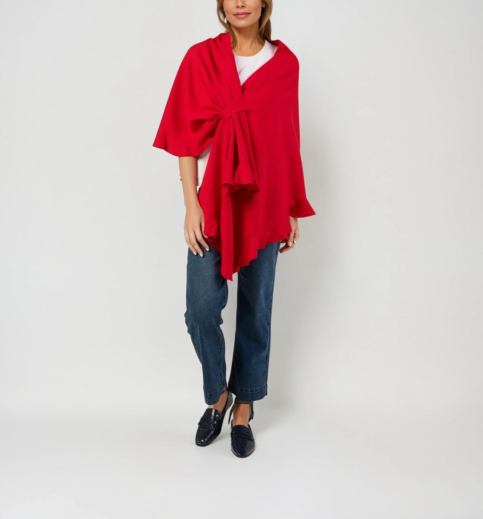 Spun from our Stolen Softness™️ Proprietary beloved yarn blend, The Sunday Ruffle Wrap brings a touch of romance to effortless layering. With an open front and easy drape, it slips on with minimal fuss, while the softly ruffled hem adds fluid movement and subtle flair. Lightweight but warming, it's ideal for transitional weather or layering. Offered in a selection of timeless hues like Ivory or Red, it's a refined alternative to a jacket—for everyday polish or casual elegance. Perfect for Holiday parties, escapes to wine country, or Sunday brunches. A classic and feminine transitional piece.