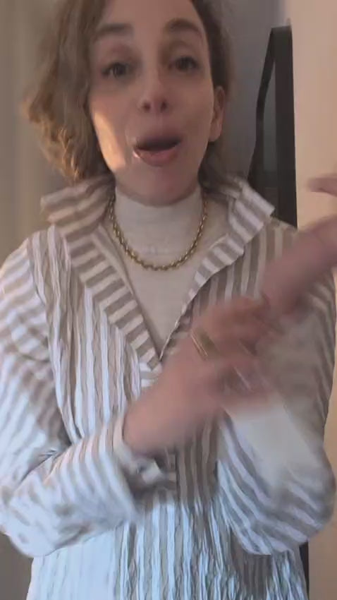 In our 'Panama' fabric, the First Class Tunic features bias-cut sleeves for soft movement, while a classic collar and a front button placket that keeps the silhouette clean. It's the perfect option for strolls on the pier or shopping in coastal towns. Ideal for pairing with shorts or linen trousers and to wear loose or tucked. A coastal-inspired piece with modern flair. Runs true to size—we recommend sizing up for a slightly roomier, relaxed fit.